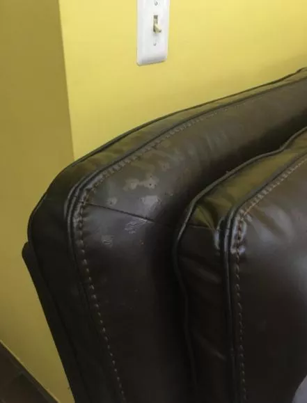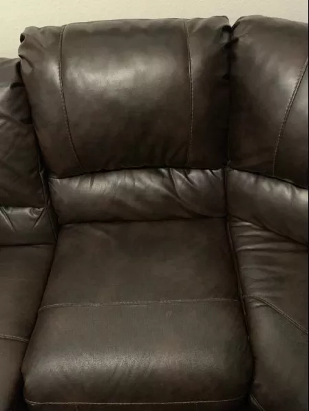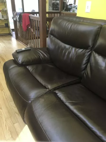 I should have taken a before photo so I could show the difference but I didn’t. We had one big tear in our “pleather” sofa as well as many scratches and small holes. Most were made by our cat walking on the couch and her nails just made little pin holes. The tear was about the size of a quarter and was caused by a bug spray coming in contact with the couch and delaminating it. I have to say, this product does a better job fixing large holes/tears than small. Our couch is chocolate so I used the black. I also did’t need the patch material. Applied one coat, gave about an hour to dry then reapplied. You can’t see the big hole unless you look for it. so much better than before.