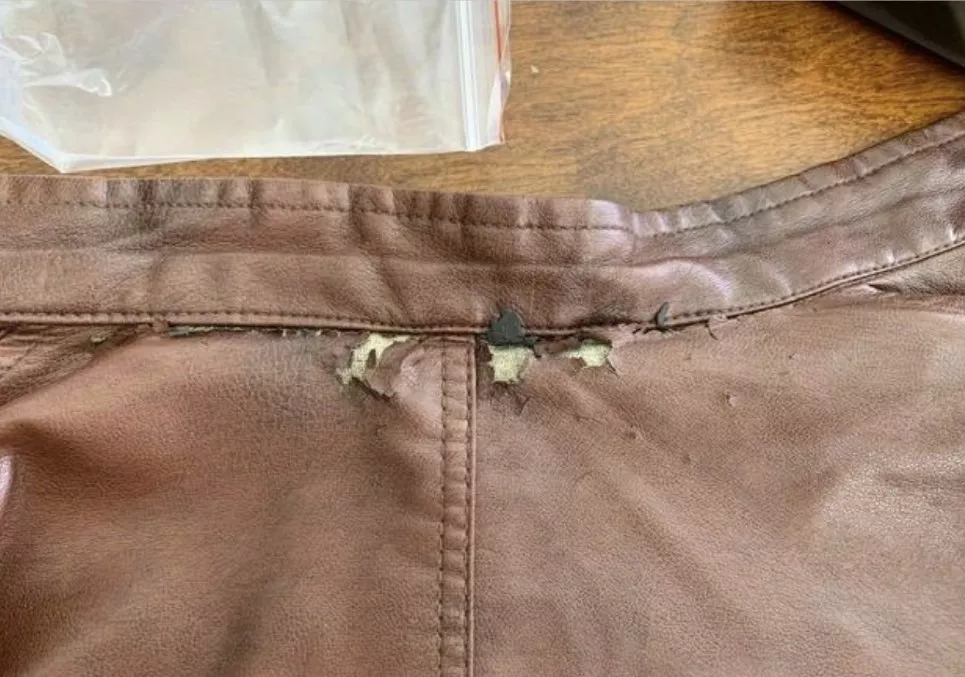 It looks better than before. I tried and tried to match the color but knew what I was missing was red for my faux leather jacket that was peeling just under the collar. Finally, I decided to try adding red acrylic paint and it didn’t take long before I had almost exactly the color I needed. I will add a couple more layers and hope it doesn’t look too much like a repair. I couldn’t wear it the way it was so I figured I couldn’t ruin it any worse.