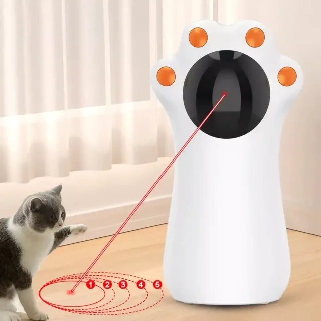 This laser toy is simply fantastic! It has breathed new life into our old Tomcat who had become quite sedentary. Now he’s up and about, having time of his life chasing that elusive red dot.