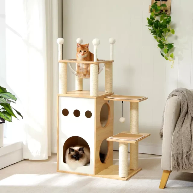 As your cats enjoy their new favorite hangout, you can rest easy knowing they have a designated area for play and relaxation. The combination of quality materials and thoughtful design ensures it will last through countless adventures. Plus, its elegant appearance means you won’t have to hide it away. Instead, let it take a place of pride in your living room or bedroom!