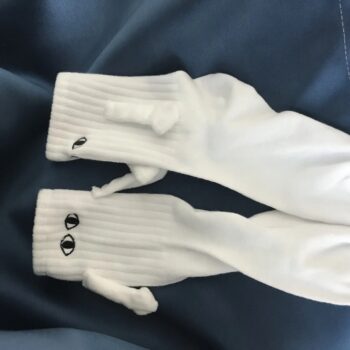 Wearing these socks never fails to brighten my day. I love the hand-holding feature and how they can interact with other sock pairs. I gave the second pair to a coworker, and now we enjoy high-fiving throughout the workday—truly a mood booster!