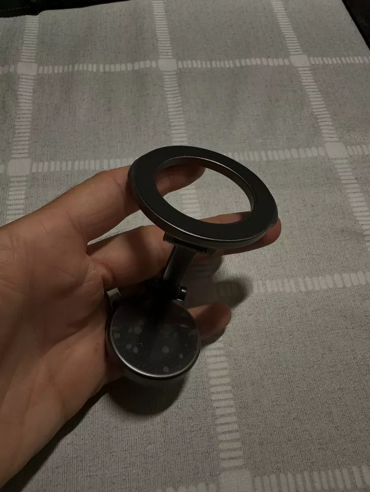 To ensure a strong hold, make sure to add extra adhesive using the transparent sticker from the kit and thoroughly clean the surface with alcohol. The phone holds perfectly without a case, but if you use one, you can place the metal circle under it. It's excellent quality, looks expensive, and has a minimalist design. I suggest buying it