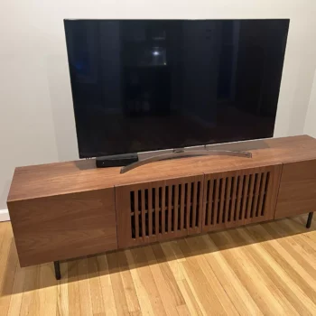 When it comes to choosing the perfect TV stand, our product stands out with its modern style and practical design. It’s best used in a contemporary bedroom or living room setting where clean lines and modern aesthetics are appreciated. This TV stand’s special features include: