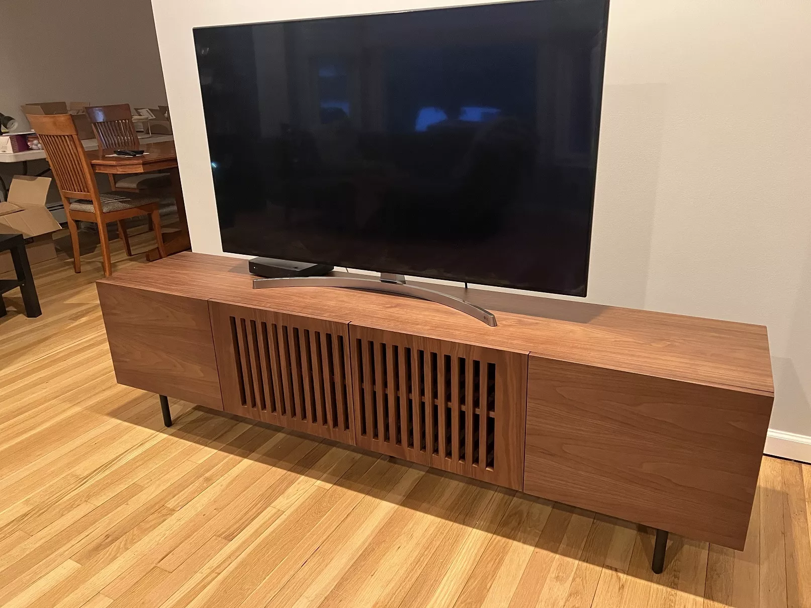 I recently upgraded my living space with the Modern Chic 2M Lowboard TV Stand, and it's genuinely transformed the area. From the moment I set my eyes on it, the sleek, modern design caught my attention, perfectly encapsulating what I envision modern elegance to be. The quality of this piece is immediately noticeable, providing a sturdy yet stylish foundation for my entertainment setup. The contemporary feel it brings into the room is both refreshing and welcoming, offering a perfect blend of style and functionality. Its durability is a testament to the thoughtful craftsmanship, ensuring that it will remain a centerpiece in my home for years to come. The easy-to-clean surface is an added bonus, making maintenance a breeze. Its spacious dimensions effortlessly accommodate all my gadgets, from game consoles to streaming devices, without clutter. 😊