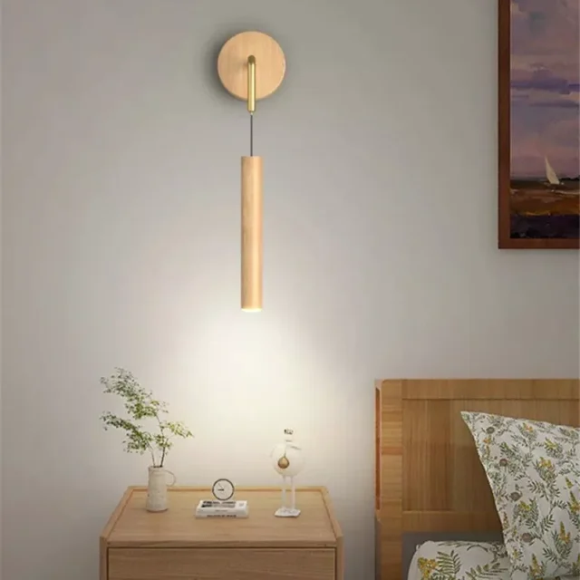 Modern Nordic Walnut Wooden Wall Lamp
