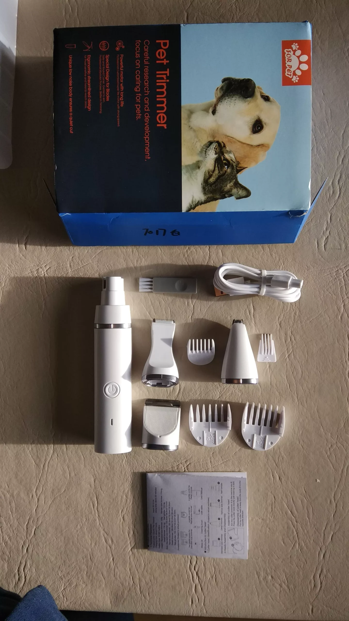 Super silent so she doesn't scare my dog. Very practical nail file and the different adapters of the hair clipper! Very happy with the purchase!