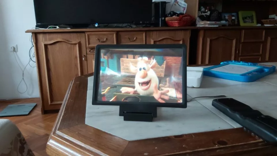 This magnifier screen is super good for the people like me to watch shows (cooking shows) or videos while doing cooking or cleaning the dishes. I have an iPad but it is always busy with my kids. The design is super cool,the view is clear and allows me to watch anything from distance.