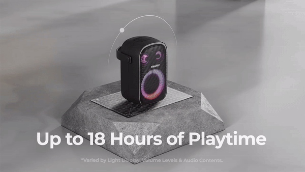 Whether it’s a beach party, camping trip, or an impromptu karaoke session at home, this speaker’s ultra-portable design with a convenient handle makes it easy to carry anywhere. Its robust battery ensures that your music keeps playing for up to 18 hours, so the party never stops. Plus, the speaker’s IPX6 waterproof rating makes it resilient against water splashes, making it a perfect choice for all your adventures.