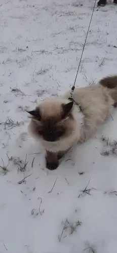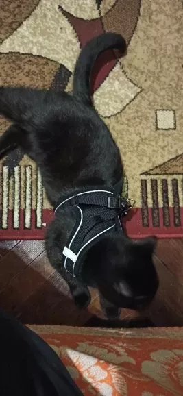 Size S is a perfect fit for my 2.5 kg, 15-week-old kitten.