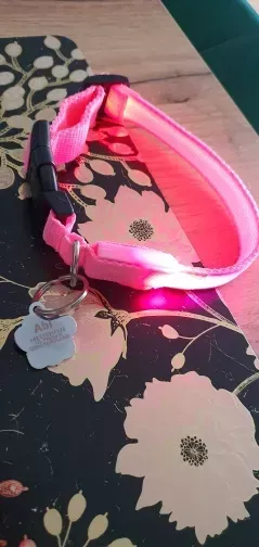 Walking at 3 a.m. has become safer with this brightly lit collar, making us visible to traffic.