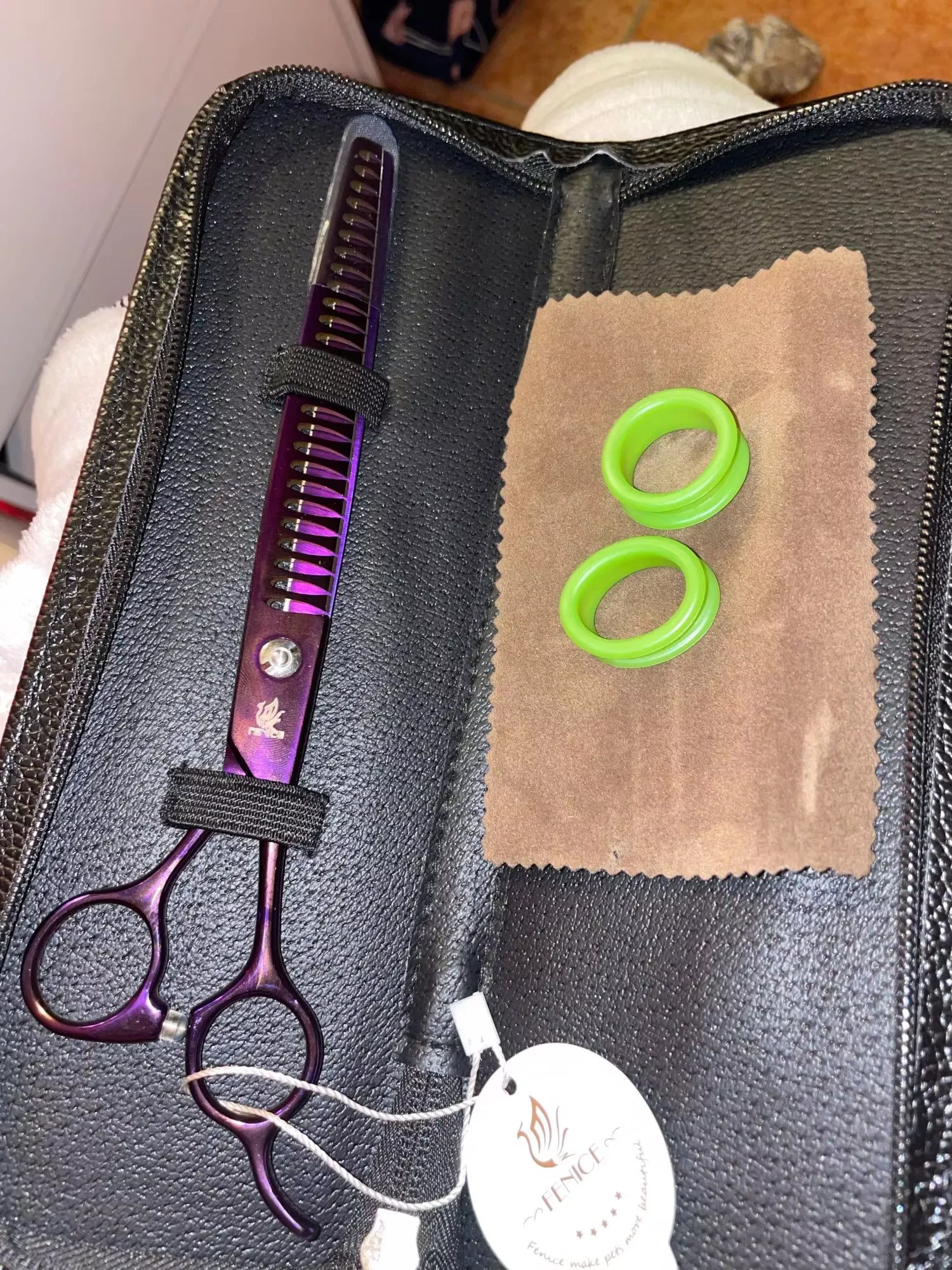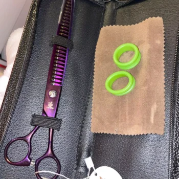 Transform your pet grooming routine with our Professional 8-Inch Titanium-Coated Thinning Shears. Designed for both professional groomers and pet owners who demand the best, these shears are crafted from premium JP440c stainless steel, ensuring unmatched sharpness and durability. The stunning purple titanium coating not only adds a layer of protection against corrosion but also gives these shears a unique and stylish appearance. Whether you’re thinning, blending, or finishing your dog’s coat, these shears provide the control and precision needed to achieve flawless results.
