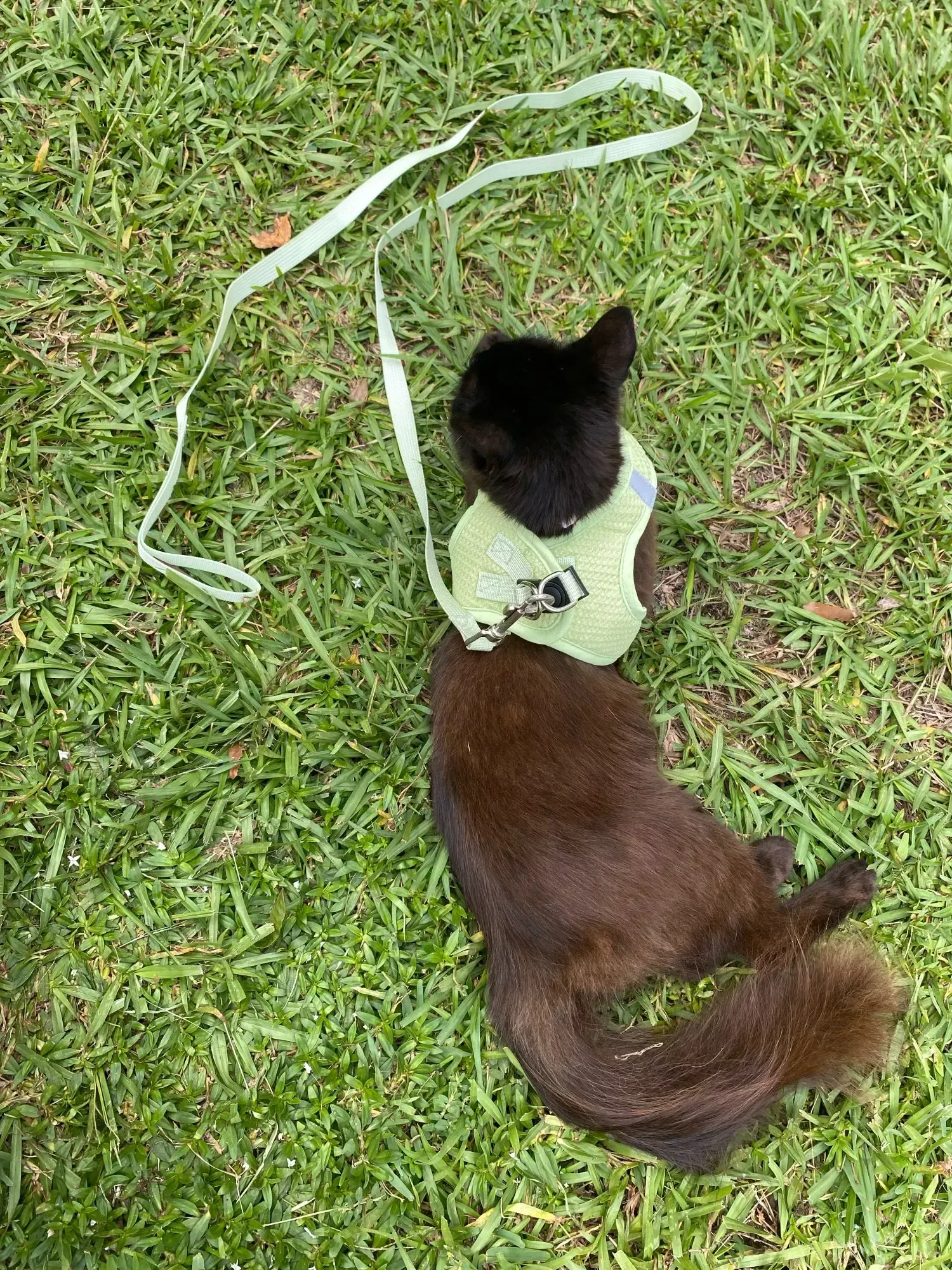This harness and leash set is simply purrrfect! My little furball loves it, and I feel more secure knowing she's safe during our walks. Plus, the reflective mesh makes her visible even in low light conditions. 🐾