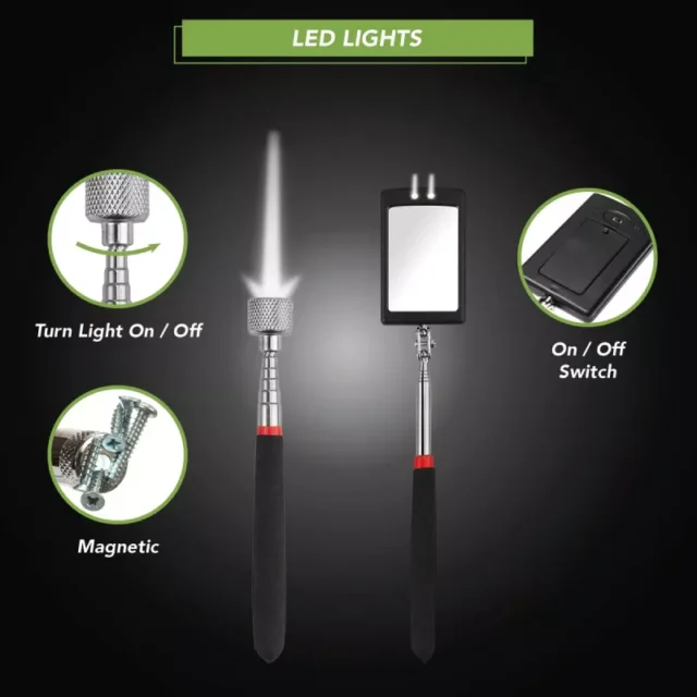 Say goodbye to those hard-to-reach spots and lost items with our Retractable Magnetic Pickup Kit. This versatile tool set combines functionality with innovation, featuring 360-degree rotating inspection mirrors and powerful retractable flashlights. Perfect for mechanics, DIY enthusiasts, or anyone who wants to simplify their cleaning and repair tasks, this kit makes retrieving small metallic objects a breeze.