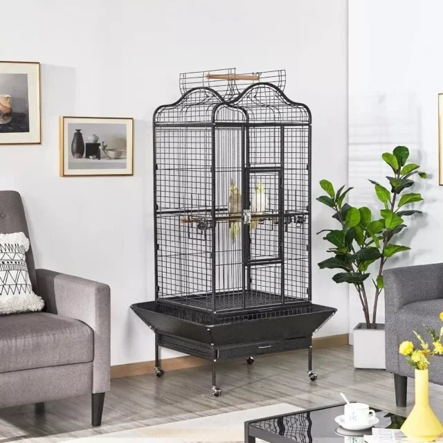 Discover the ultimate home for your feathered friends with our 63” Rolling Open-Top Bird Cage. Designed for mini macaws, African greys, and other large parrots, this luxurious cage provides ample space and comfort while making interaction easy and enjoyable. Perfect for both your pet’s happiness and your convenience, this bird cage is the ideal addition to any bird lover’s home.