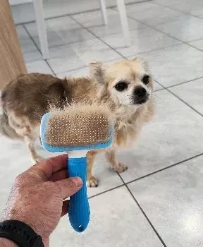 Brusher pick up the bristles well, and is not aggressive for my dog, very good quality to recommend.