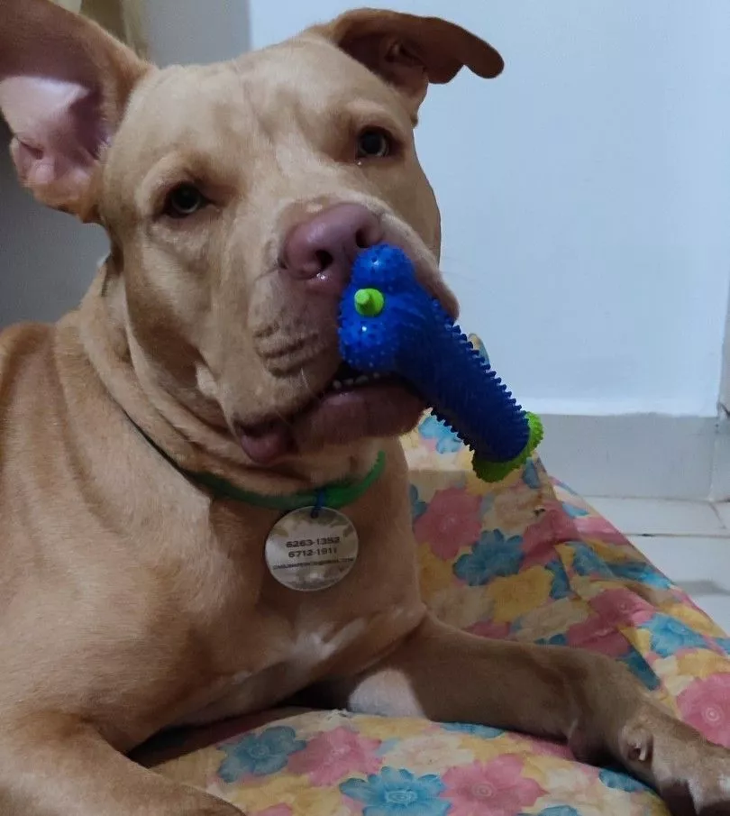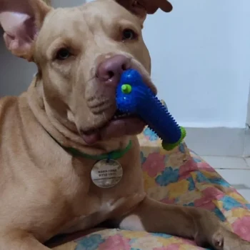 We just got this molar stick for our pup and he's obsessed! It keeps him entertained for hours, plus it really does a great job cleaning his teeth. Great buy!