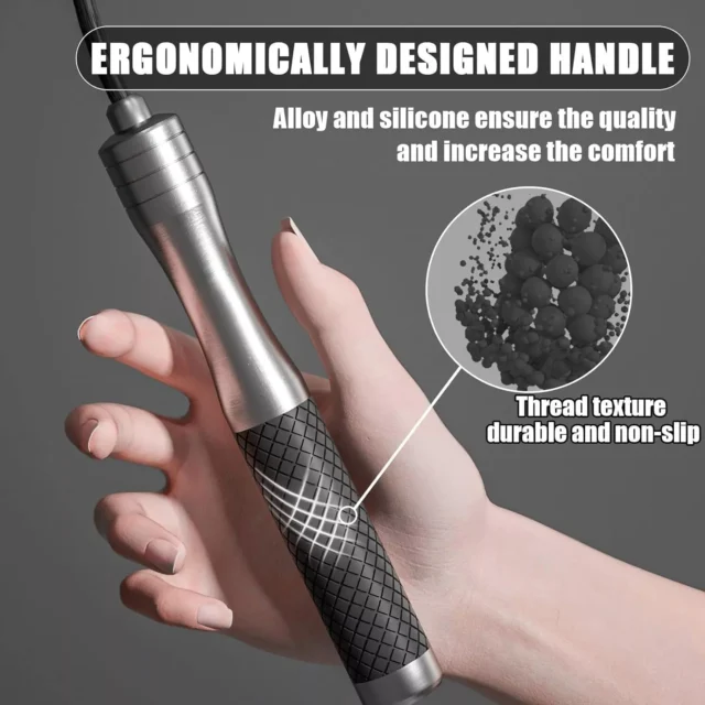With a sturdy 9-foot wire rope, this skipping rope is customizable to fit your height and needs. The premium build and lightweight design make it easy to carry and ideal for both indoor and outdoor use. The smooth rotation mechanism lets you skip at high speeds, ensuring you can maintain a steady rhythm and improve your endurance. Choose from sleek color options like black, silver, and pink to match your personal style.
