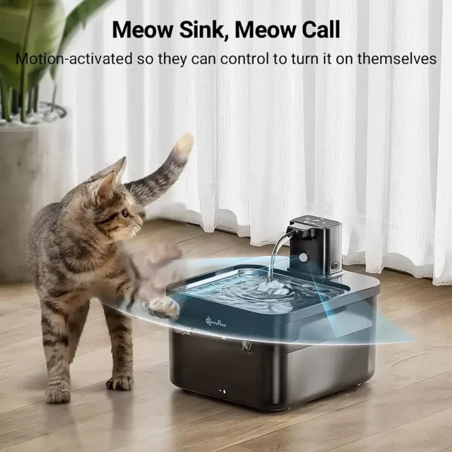 Featuring a sleek stainless steel design, this fountain is not only visually appealing but also helps prevent folliculitis on your cat’s chin. The dual water modes, including a sensor feature, automatically activate the fountain when your pet approaches, making hydration effortless.