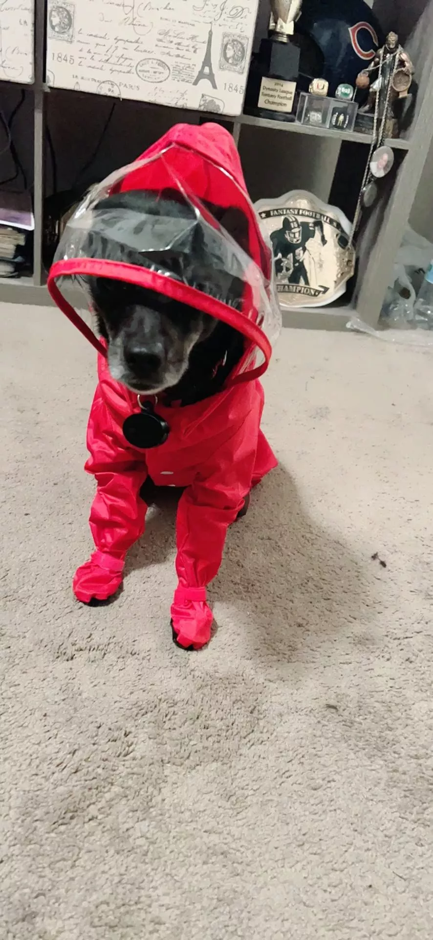 🐾💦 Oh my gosh! This is the best thing I've bought for my furry friend. We live in a pretty rainy area and every time we had to go out, it was a complete disaster. My pooch would get soaking wet and then track mud all over the house. But this raincoat has totally fixed that issue! It's completely waterproof, so he stays dry even in heavy downpours. Plus, it's super easy to put on and take off - no fussing with complex straps or buttons. And did I mention how cute he looks wearing it? 😍 Absolutely adorable! The quality of material is fantastic too; sturdy yet comfortable enough for him not to feel restricted while playing around or doing his business outside 🌧️ Highly recommended!