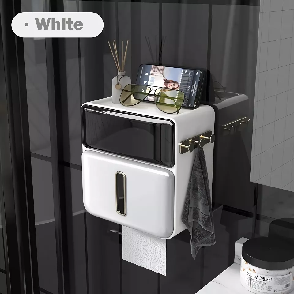 The Waterproof Wall-Mounted Tissue Holder is packed with features that make it a must-have for any modern bathroom: